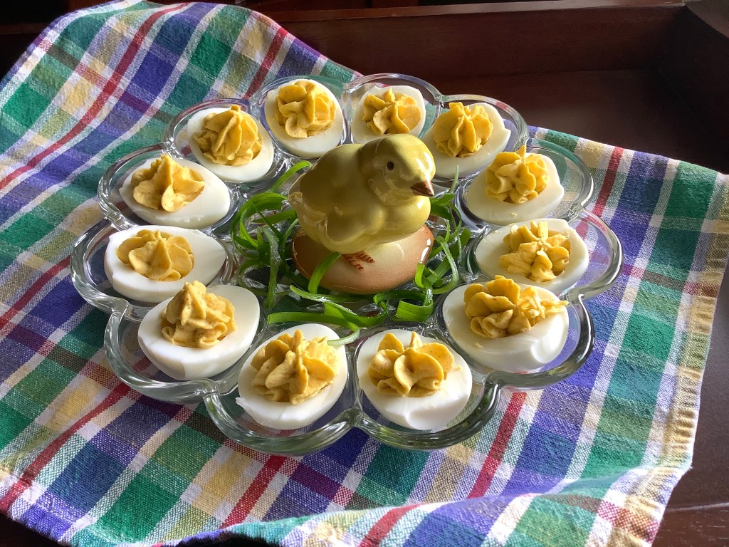There’s nothing like a classic deviled egg! This recipe is an adaptation of a curried egg sandwich recipe in “Tea & Crumpets” by Margaret M. Johnson (Chronicle Books 2009). I love the whiff of lemon that perfumes these flavorful orbs. -E
